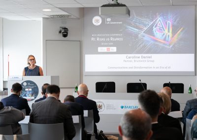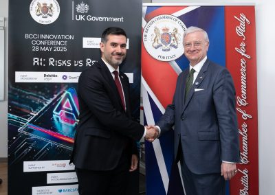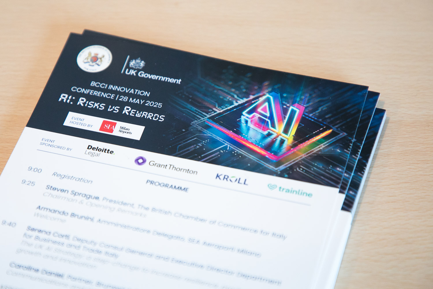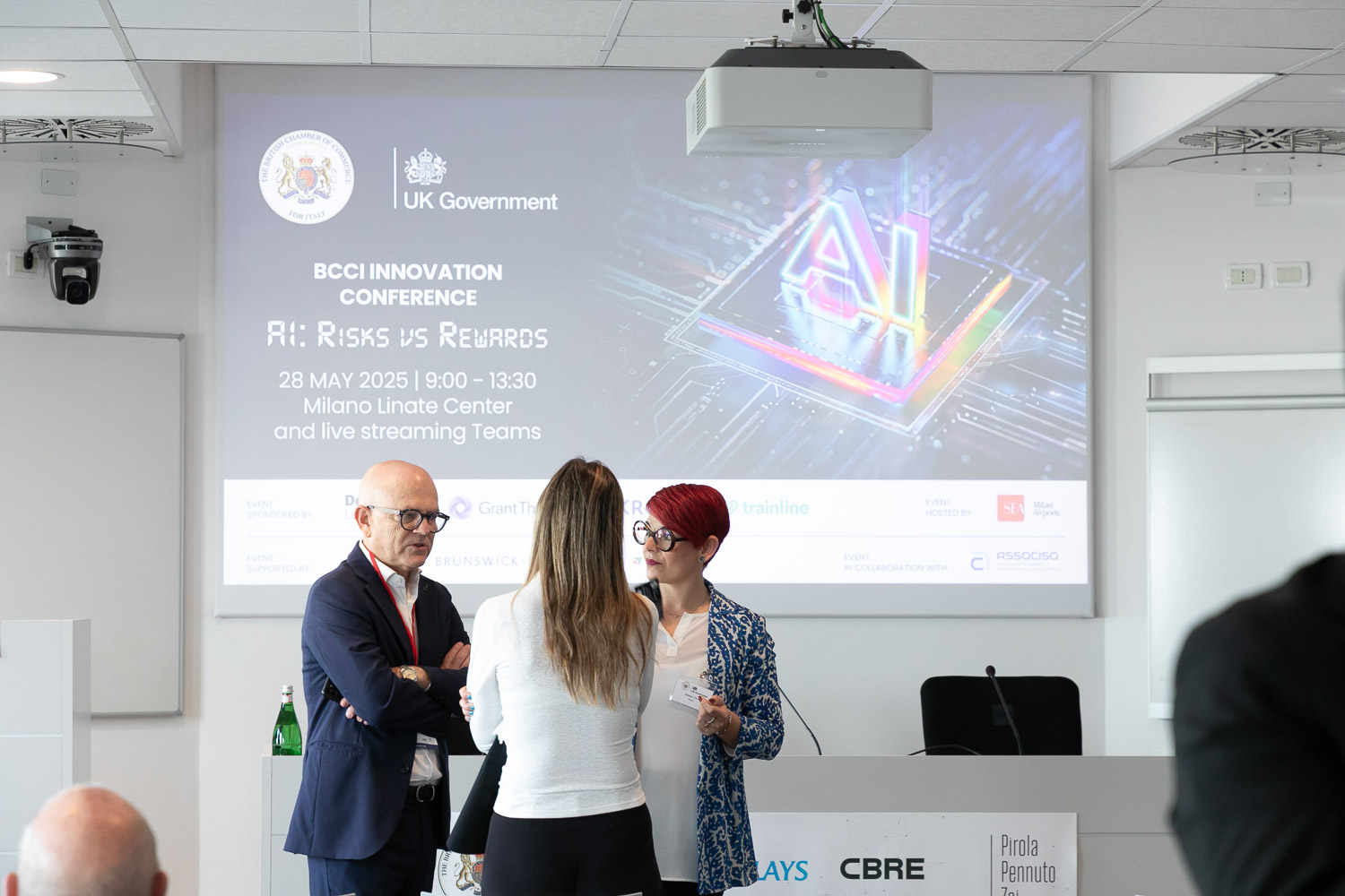 We extend our sincere thanks to our speakers for their valuable contributions to the discussion and for providing insightful perspectives on the challenges and opportunities presented by artificial intelligence:Steven Sprague (President, The British Chamber of Commerce for Italy), Armando Brunini (Amministratore Delegato, SEA Aeroporti Milano), Claudio Rosa (Head of Defence and Advanced Engineering, Department for Business and Trade Italy), Caroline Daniel (Partner, Brunswick Group), Paolo Bertuccini (Socio fondatore ASSOCISO; CISO e Responsabile Cybersecurity – Direzione Information Technology, Esselunga), Fabio Gianotti (Socio fondatore ASSOCISO; CISO e CTO in azienda internazionale del lusso), Riccardo Riccobene (Socio fondatore ASSOCISO; Head of CISO Security Assurance, DWS Asset Management), Marco Ditta (Executive Director Group Head Data & Artificial Intelligence Officer, Intesa Sanpaolo), Alessandro Caleffi (ICT Director, SEA Aeroporti Milano), Leonardo Cesarini (Chief Commercial Officer, Trenord), Reda Kechouri (Director of ML/AI, Trainline), Pietro Boccaccini (Director, Deloitte Legal – Italy), Paul O’Hare (Partner, Deloitte Legal – UK), Elizabeth Lumb (Director, Deloitte Legal – UK), Julie van Vliet (Manager, Deloitte Legal – The Netherlands), Roberto Antoniotti (Head of Technology & Innovation and CEO, Grant Thornton Digital), Emanuele Camandona (Partner, CastaldiPartners), Alexia Konstantinidi (Vice President, Cyber Risk, KROLL), Melanie Garson (Associate Professor in International Security, University College London), and Marco Capponi (Giornalista Milano Finanza, Moderator)